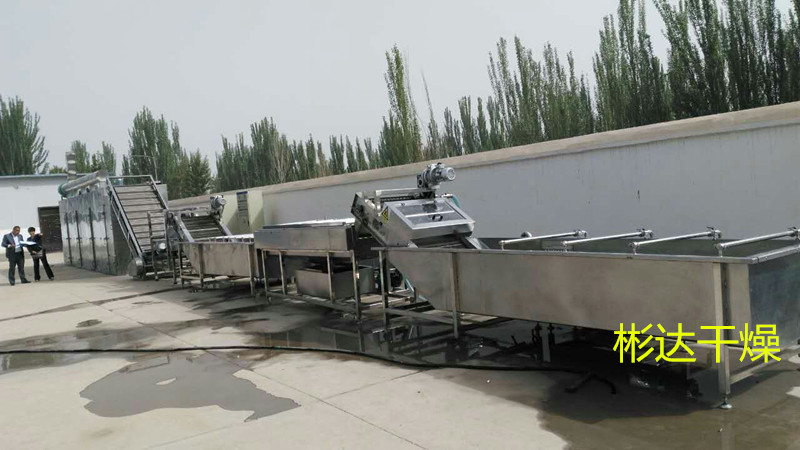常州彬達干燥制作的紅棗烘干生產線,分前道工序、后道工序,由上料機、清洗機、烘干機等組成,溫控可調,采用電器聯鎖,可PLC控制。