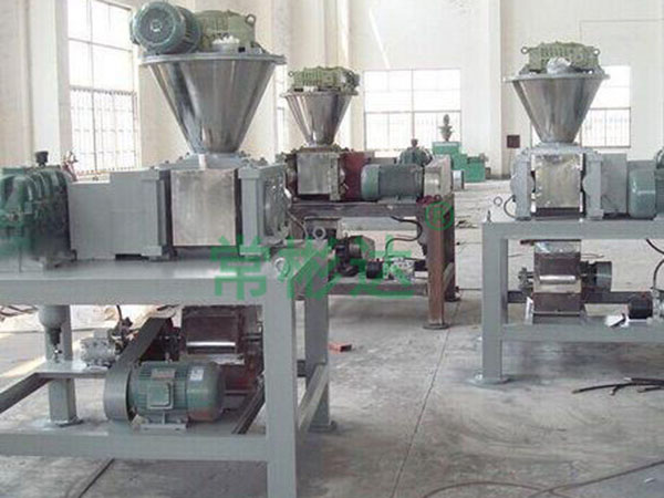 擠壓造粒的形式可以有對(duì)輥式和輪輾式兩種,對(duì)輥式擠壓是先壓成大塊,再破碎成顆粒,這樣裝置的能力大、顆粒強(qiáng)度高、能耗低,對(duì)輥擠壓在國(guó)外使用廣泛。輪輾式是在輥表面直接做成有穴槽型的形狀,一次擠成成型顆粒。產(chǎn)品強(qiáng)度較低有時(shí)需添加粘結(jié)劑。適合做有機(jī)肥和復(fù)合肥等顆粒肥料。