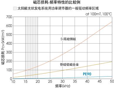 在市面上銷售的適合單家獨戶的型號中,太陽能光伏發電系統用功率調節器的功率轉換效率已經達到95%的水平,即便如此,例如4.5kW型號,其中的225W的電能被當作熱量消耗掉。我們希望將損耗控制在兩位數的水平。新型鐵氧體能夠切實支持各裝配廠家的這一熱切期盼,或許是磁性領域能夠做到這一點的全世界首款功率鐵氧體。