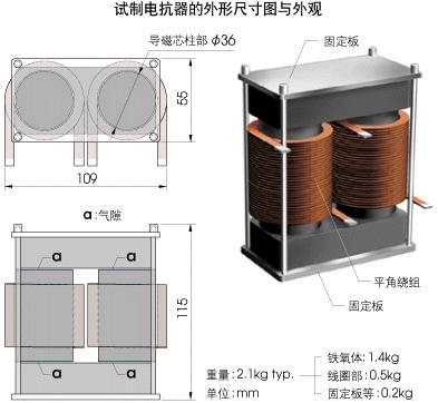 試制的串聯電抗器與進線電抗器明顯終結了以往常識。 鐵氧體的優勢在于成型加工容易、形狀設計自由度大、將消除了浪費和不合理的理想磁路能夠按用途自由追求,在眾多優勢性中,最突出的還是出類拔萃的低損耗,但鐵氧體的飽和磁通密度小,不到軟磁金屬材料的一半,在工作頻率15到20kHz的功率調節器電路條件下,磁芯容積、繞組體積均未能避免大型化,其杰出的低損耗優點并未得到活用。
